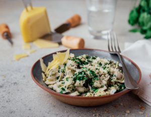 Capelettis cuatro quesos con pesto de hierbas